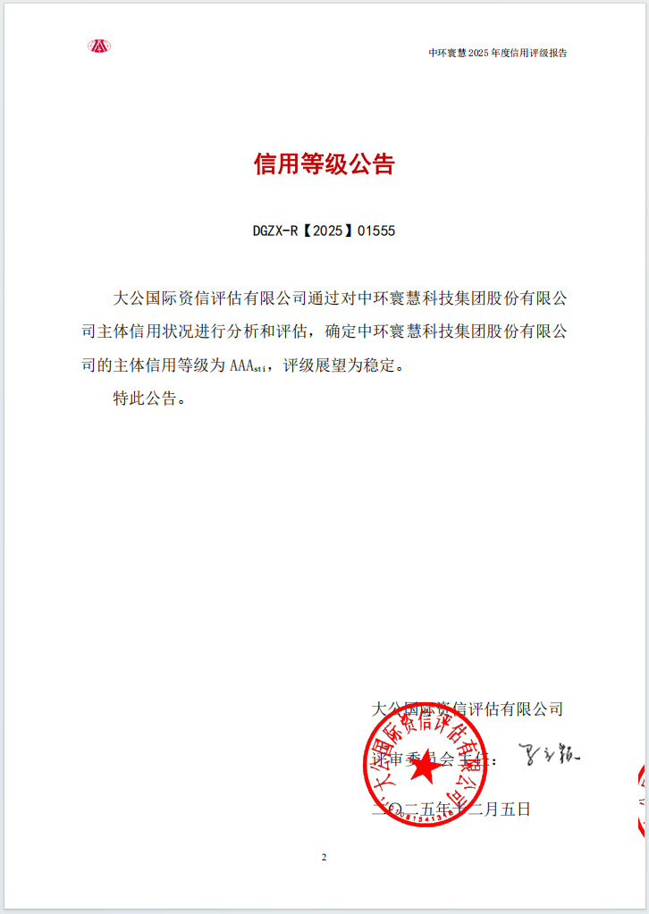 中環(huán)寰慧集團獲評AAAsti主體信用評級,以穩(wěn)健實力與卓越信用守護民生溫度